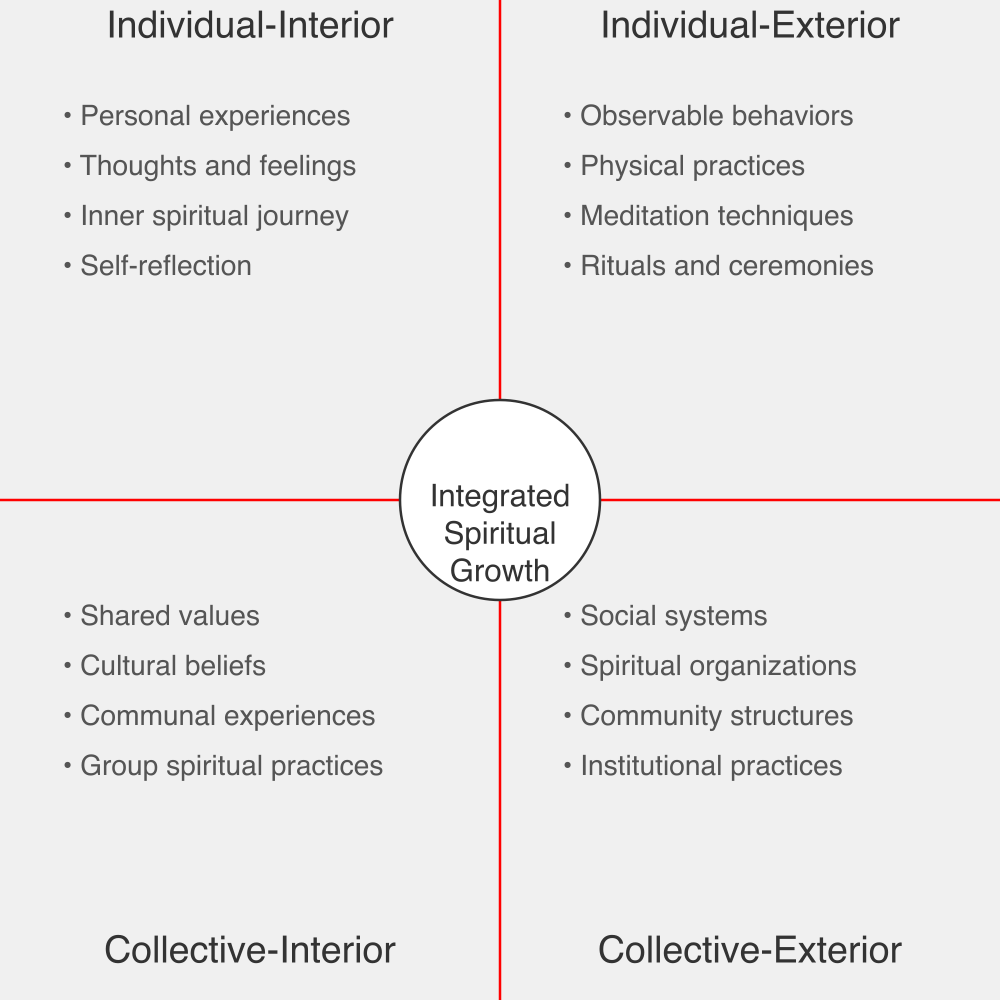 Integral theory helps us know better. Religion Your Way begins in your upper left, Individual-Interior quadrant. Explore what's in yours, and build it up intentionally. Integral theory suggests "the ups" for development: growing, waking, cleaning, opening and showing up. On your way, you'll connect with others like you. You may even find whole communities like you!